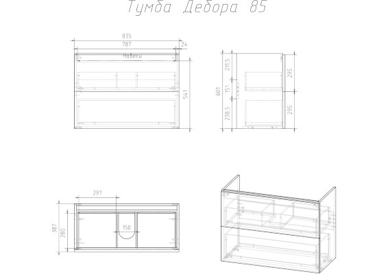 - 85 (ШхГхВ), см: 83,5х38,8х60
