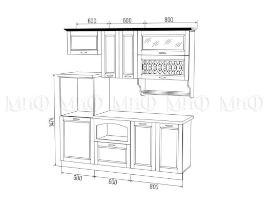 Высота верхних шкафов: 736 мм