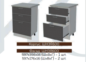 Глубина нижних шкафов без учета столешницы: 444 мм, с учетом столешницы 600 мм